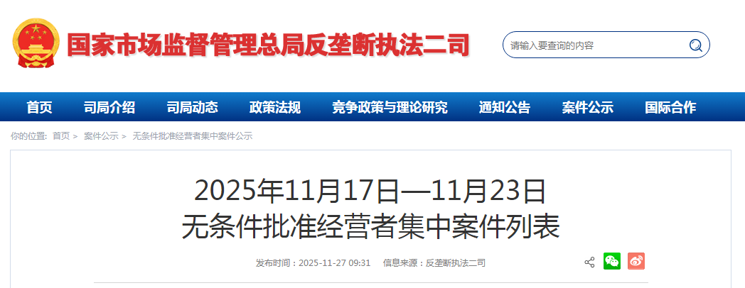 | 5 | 斯泰兰蒂斯汽车简易股份公司与太平洋收购有限公司新设合营企业案 | 斯泰兰蒂斯汽车简易股份公司,太平洋收购有限公司 | 2025年11月18日 |