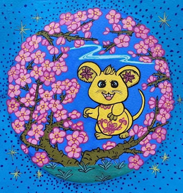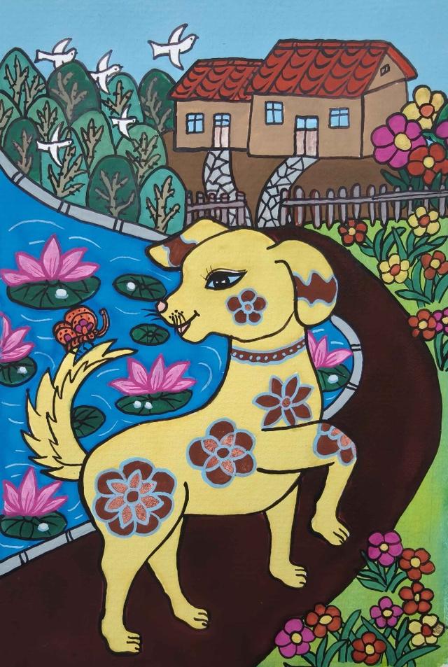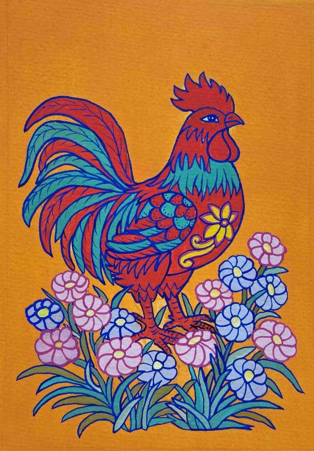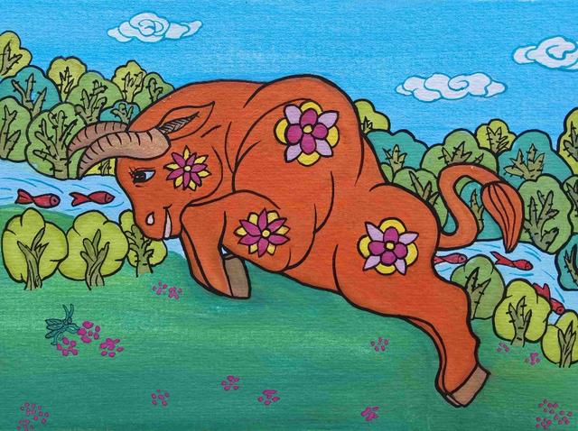 靖宇农民画以色彩浓艳、造型质朴、内涵鲜活著称,是承载地域民俗风情与群众生活期盼的重要文化载体。在系列作品创作中,韩丽梅与盖斌夫妇深耕传统文化沃土,深入挖掘生肖文化的历史渊源与吉祥寓意,将鼠的灵动、牛的勤劳、虎的威猛等生肖特质,与祥云、花草、山水等传统吉祥纹样有机结合,以简洁明快的笔触、对比强烈的色彩,生动呈现出每个生肖的独特文化内涵,让传统符号焕发出别样韵味。