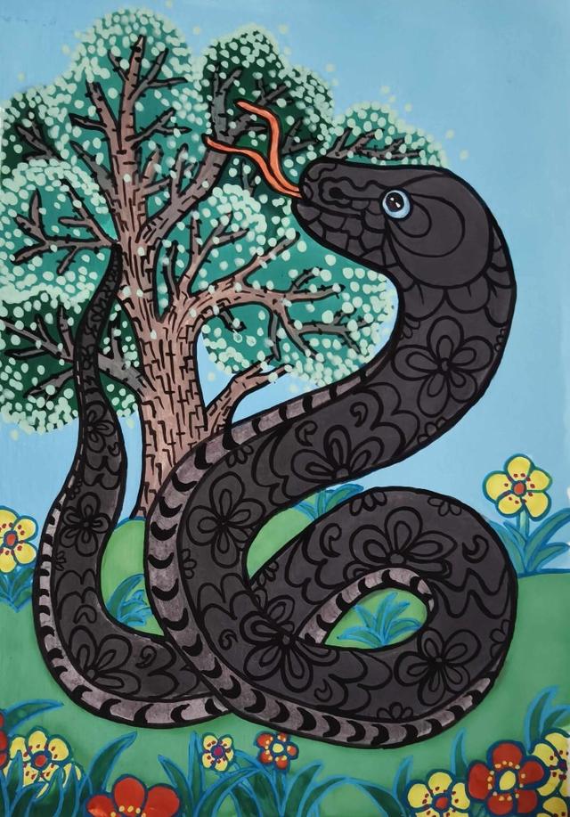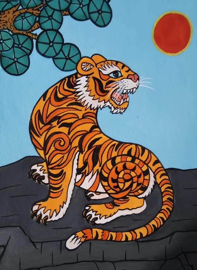 创作过程中,夫妇二人始终秉持“源于生活、高于生活”的创作理念,既坚守靖宇农民画粗犷豪放的艺术本色,又融入对传统文化的现代解读。画作既还原了“孺子牛”“上山虎”等生肖文化中深入人心的精神象征,又通过质朴直白的艺术表达,传递出老百姓对美好生活的真挚向往,实现了文化价值与艺术价值的高度统一。