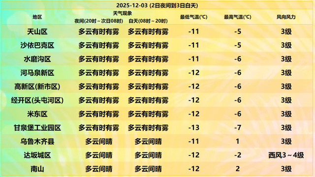 周内其他时间城区、米东区和甘泉堡晴有时有雾。