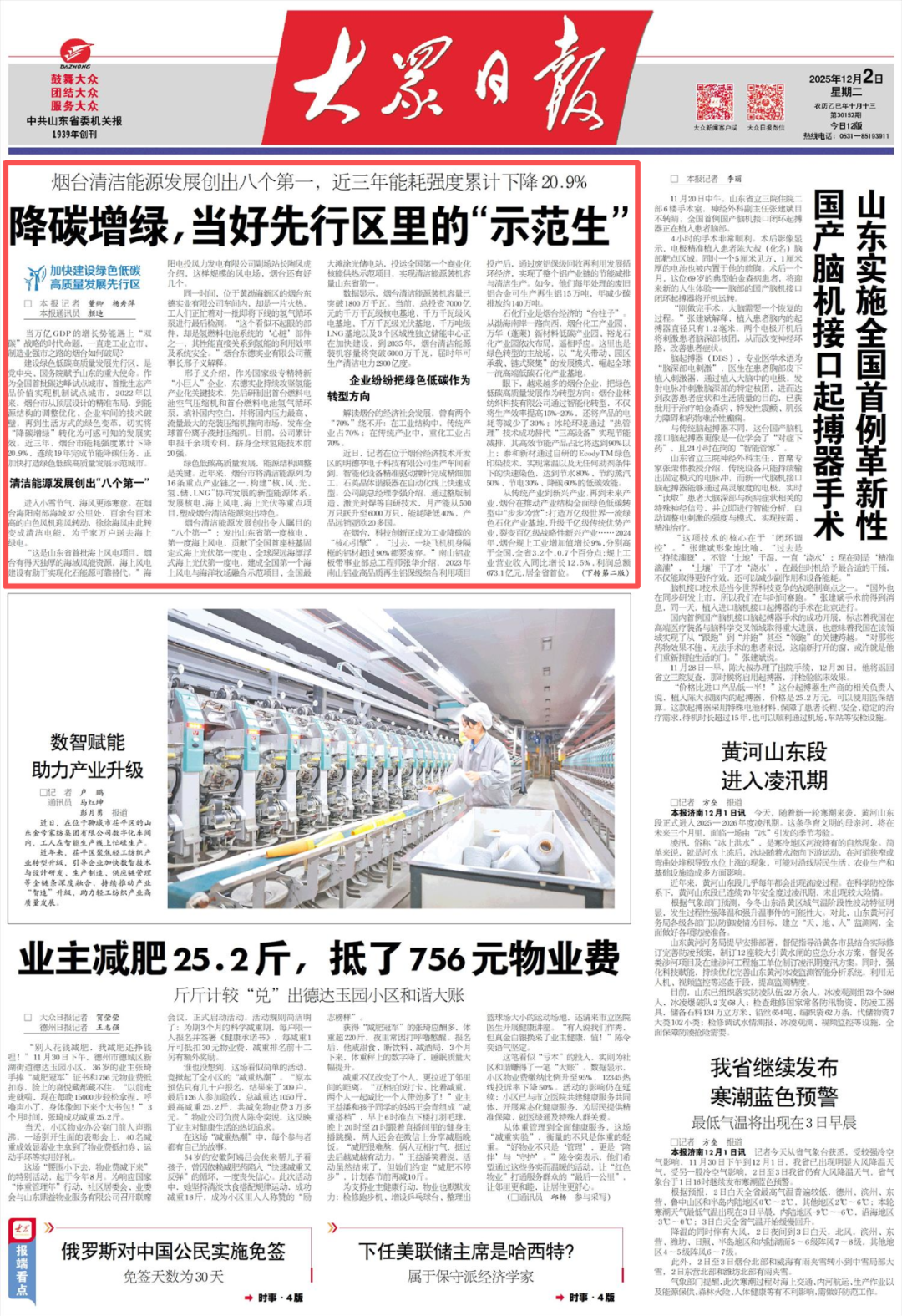 建设绿色低碳高质量发展先行区,是党中央、国务院赋予山东的重大使命。作为全国首批碳达峰试点城市、首批生态产品价值实现机制试点城市,2022年以来,烟台市从顶层设计的精准布局,到能源结构的调整优化、企业车间的技术破壁,再到生活方式的绿色变革,切实将“降碳增绿”转化为可感可知的发展实效。近三年,烟台市能耗强度累计下降20.9%,连续19年完成节能降碳任务,正加快打造绿色低碳高质量发展示范城市。