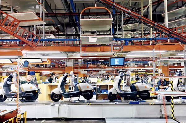 2025年9月16日,江苏无锡锡山区电动车产业园内的雅迪科技集团无锡基地电动车生产线上,一辆辆电动车从这里走出无锡、驶向世界