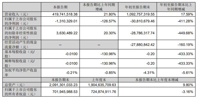 阿石创2025年三季度报告显示,年初至报告期末归母净利润为-3081.07万元,扣非净利润为-2878.63万元。