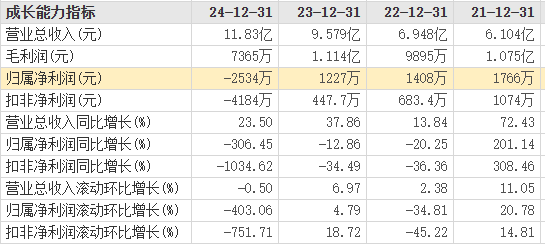 阿石创2024年归母净利润为-2534万元,扣非净利润为-4184万元。