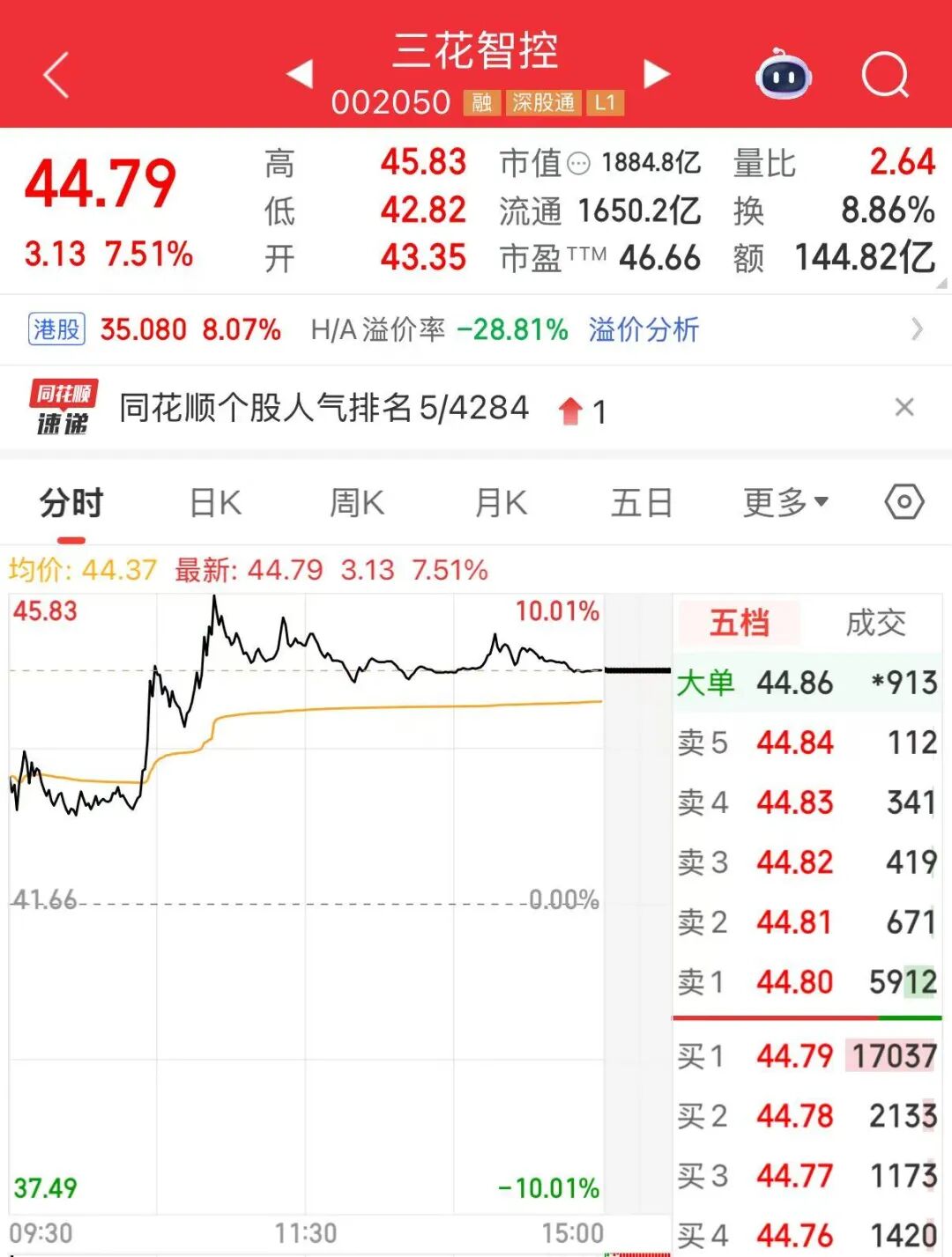 (文中行情图来自同花顺)