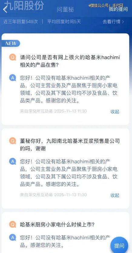 [2]股价连续异动 九阳股份撇清“哈基米”概念 . 中国报智库