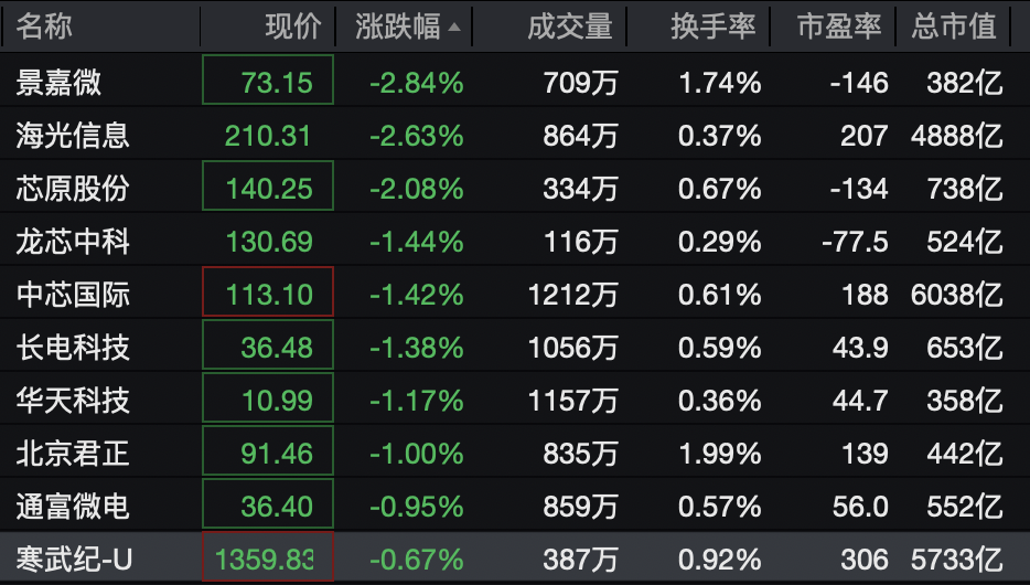 此外,摩尔线程概念股开盘下挫,和而泰、联美控股跌幅居前。