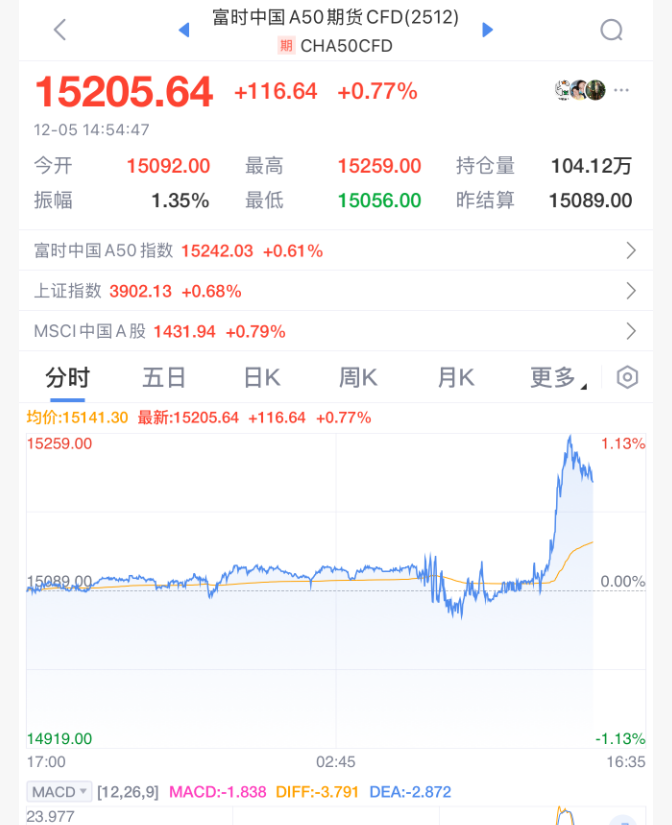 富时中国A50指数期货也同步直线拉升!