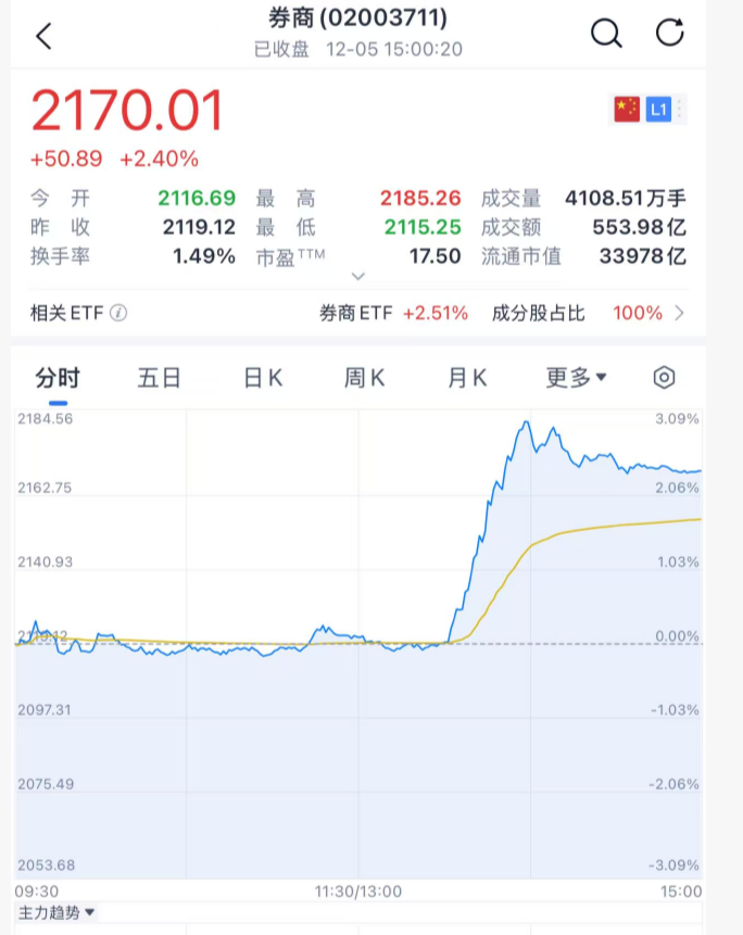 那么,接下来,大家可能又要继续追问,大金融板块为何突然暴涨?或许跟午后社交网络一张小作文的截图疯传有关,但内容过于劲爆,又无法考证,只能大家自己意会了。