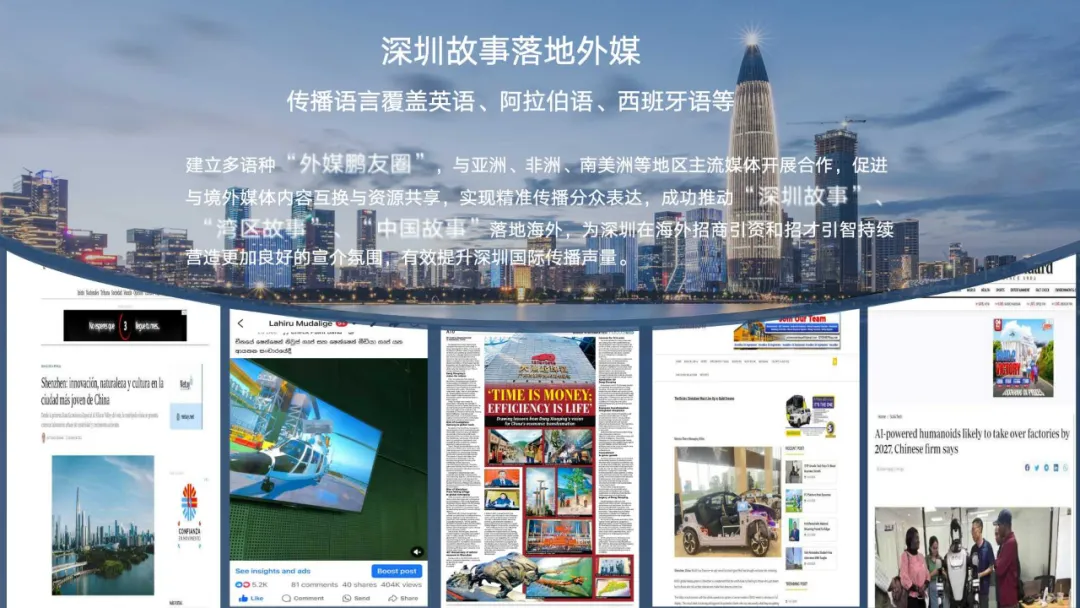 深圳市委外办用好外媒访深契机,提升深圳国际传播效能。外媒团记者深圳采风,即“最会讲故事的人”到访“最有故事的地方”,2025年共有44个国家20批次257位外媒记者。深圳故事落地外媒,传播语言覆盖英语、阿拉伯语、西班牙语等。建立了多语种”外媒鹏友圈“,与亚洲、非洲、南美洲等地区主流媒体开展合作,促进与境外媒体内容互换与资源共享,实现精准传播分众表达,成功推动”深圳故事“”湾区故事“”中国故事“落地海外,为深圳在海外招商引资和招才引智持续营造更加良好的宣介氛围,有效提升深圳国际传播声量。