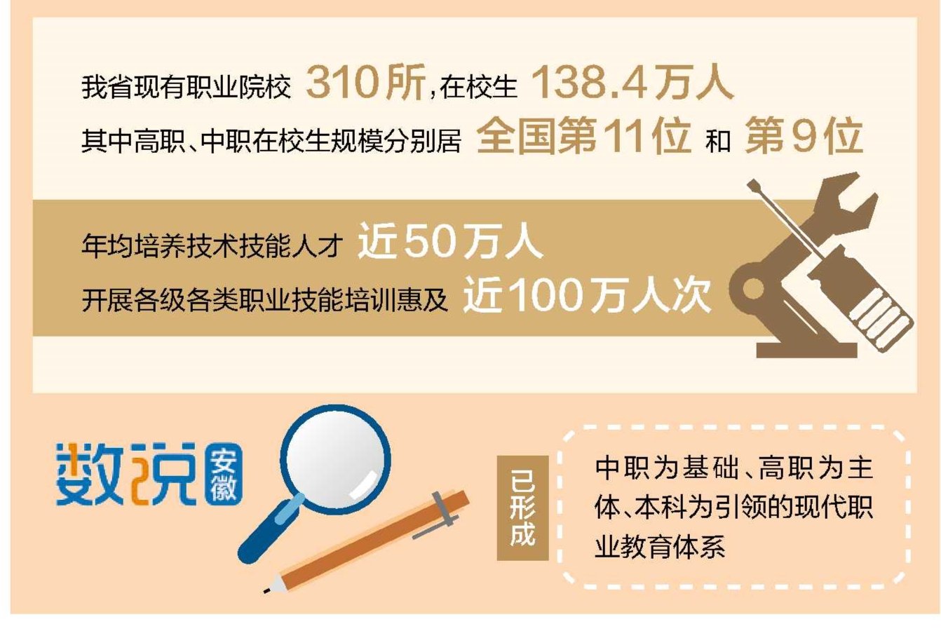 我省现有包括本科、高职、中职在内的不同层次职业院校310所,专业布点6058个,在校生138.4万人,其中高职、中职在校生规模分别居全国第11位和第9位,年均培养技术技能人才近50万人、开展各级各类职业技能培训惠及近100万人次,已形成中职为基础、高职为主体、本科为引领的现代职业教育体系。