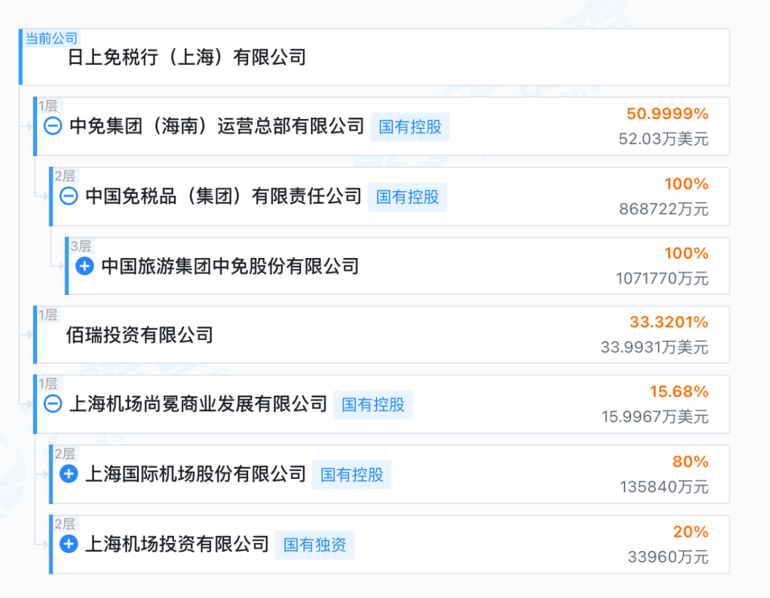 图片来源:视觉中国(资料图)日上上海成立于1999年6月,是国内首家经营机场免税店的外资企业。2018年,中国国旅的全资子公司中国免税品(集团)有限责任公司以15.05亿元(或等值美元)收购佰瑞投資有限公司(曾用名:Base Rich Investments Limited)和上海文语斋图书有限公司合计持有的日上免税行(上海)有限公司51%股权,成为控股股东。彼时,中免表示,通过此次收购,中免公司可取得上海机场的免税经营权,弥补上市公司免税业务在上海市场的短板,有助于中免公司扩大对品牌供应商的采购规模,发挥规模效应,提升经济效益。