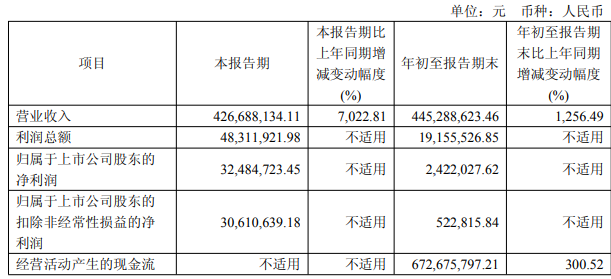 2025年前三季度,海泰发展营业收入为4.45亿元,归属于上市公司股东的净利润242.20万元,归属于上市公司股东的扣除非经常性损益的净利润52.28万元,经营活动产生的现金流量净额6.73亿元。