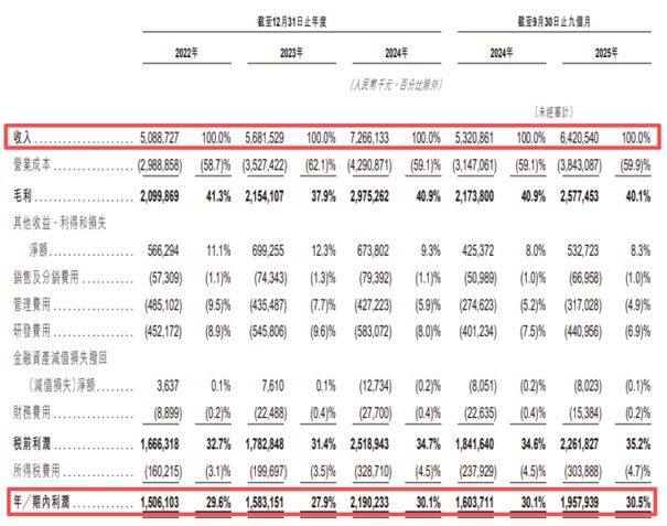 业绩方面,报告期内,三环集团分别实现收入50.89亿元、56.82亿元、72.66亿元和64.21亿元。同期,公司年/期内利润分别为15.06亿元、15.83亿元、21.9亿元和19.58亿元。