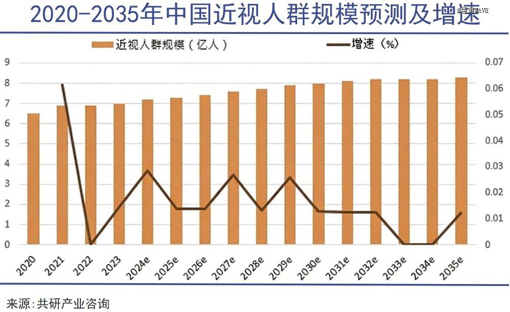 该报告在2023年时就预测,中国近视人群比率接近人口的50%,需要佩戴近视眼镜的人群约7亿人,且预测这一数据还在随时间的推移增长。