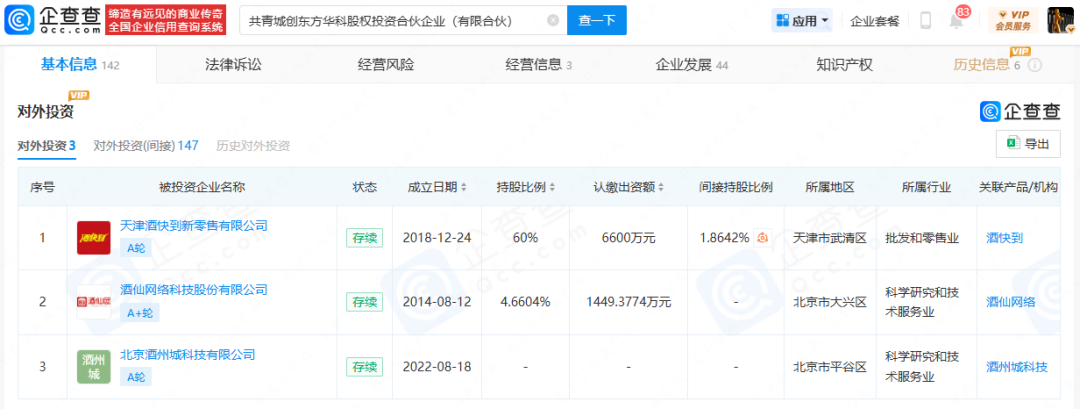 该基金已控股酒类新零售平台"酒快到"60%股权,并持有酒仙网4.66%股份,并与酒仙网共同成立新零售平台“酒快到”。此次股权收购将进一步推动酒便利与酒快到在渠道供应链的协同整合,天音控股亦将通过该基金重新布局酒类流通领域,结合自身线下渠道优势拓展酒类新零售业务。