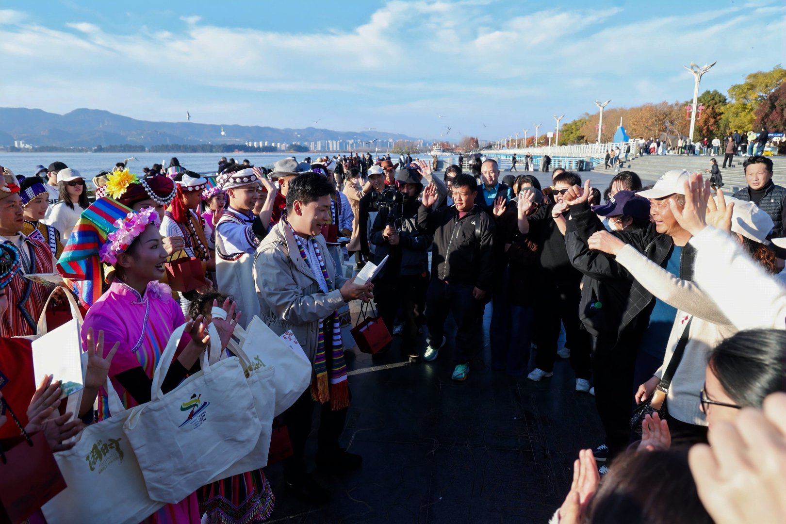 节庆的序幕,12月8日便已在昆明拉开——怒江的青年歌舞演员身着民族盛装,以歌舞快闪的形式与市民互动,让峡谷文化提前浸润都市街巷。