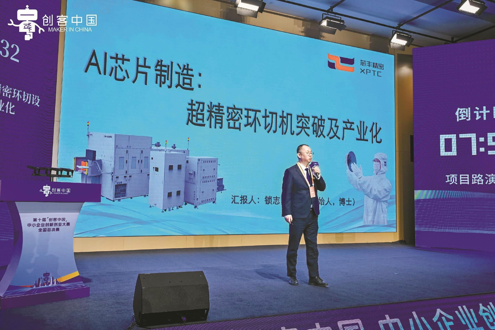 在刚刚落幕的第十届“创客中国”中小企业创新创业大赛全国总决赛上,宁波芯丰精密科技有限公司(以下简称“芯丰精密”)凭借“AI芯片制造:超精密环切设备突破及产业化”项目脱颖而出,一举夺得企业组二等奖。