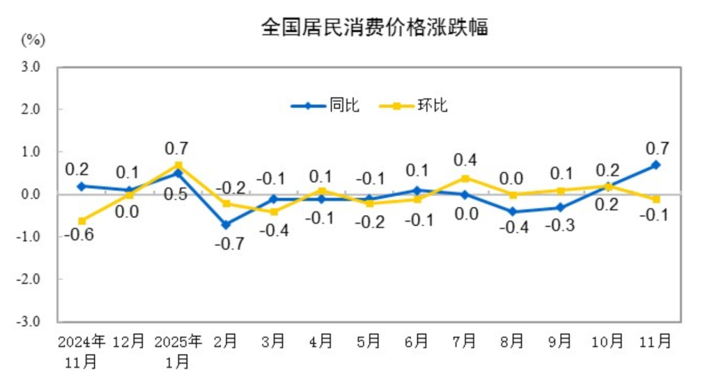 消息面上,12月10日,国家统计局公布数据显示,居民消费持续恢复,居民消费价格指数(CPI)环比略降0.1%,同比上涨0.7%,扣除食品和能源价格的核心CPI同比上涨1.2%。