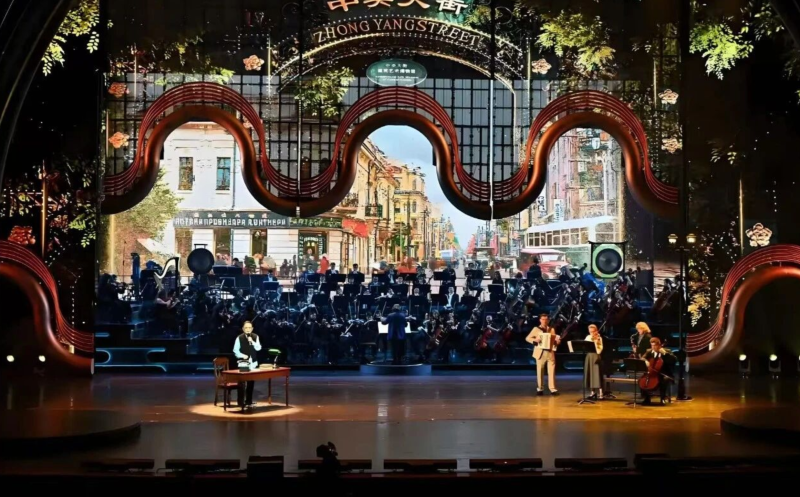 “《夜幕下的哈尔滨》,在哈尔滨看才够味!”今年7月,音乐剧《夜幕下的哈尔滨》在哈尔滨大剧院首演,吸引不少观众专程前来。来自吉林长春的李莉带着女儿坐着高铁赶来观剧。该剧以1934年的哈尔滨为背景,融合冰雪元素与历史场景,动态投影还原老城风貌,令观众仿佛置身于20世纪30年代的冰城街巷。