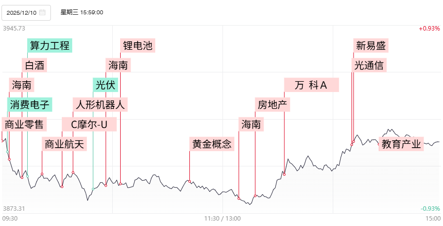 全国零售业创新发展大会于12月9日至10日举行,商务部提出,要把零售业作为培育完整内需体系、做强国内大循环的关键着力点。零售等消费股延续昨日强势,东百集团、永辉超市、茂业商业、美凯龙实现连板晋级。但食品饮料、包装等分支多数个股冲高回落,早盘一度晋级4连板的昇兴股份以及一度冲高16%的欢乐家盘中震荡回落双双报收绿盘,此前4连板的舒华体育也晋级失败,最终收跌逾3%。昨日文章已经提到,近期大消费板块的强势与商业航天概念存异曲同工,海欣食品的跌停以及安记食品的炸板回落仍对板块构成一定冲击,关注后续板内部能否涌现出一些具备高辨识度的反包品种。