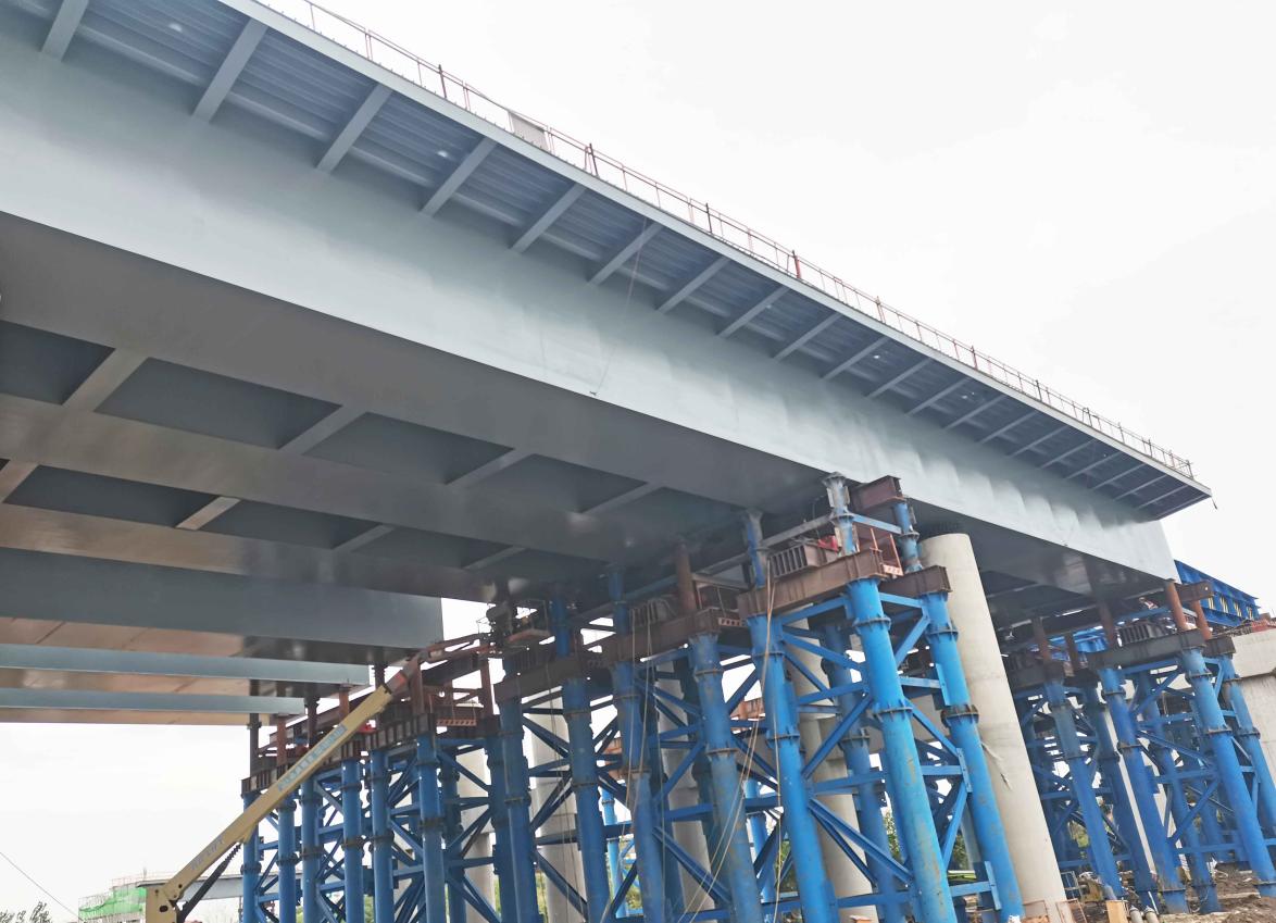 通过全体施工人员的密切配合以及对顶推力度的精准把控,使梁体在顶推过程中各项指标达到平稳,最后精确稳定到位,保质保量地完成了钢箱梁施工任务。
