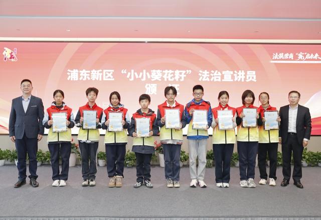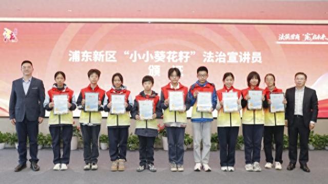 活动上,由建平实验小学带领的来自全区各街镇的10名青少年,被聘任为“浦东新区‘小小葵花籽’法治宣讲员”,并获赠《法治宣传教育法》。在浦东这片充满希望的沃土上,第一批朝气蓬勃的“小小葵花籽”,正沐浴着法治阳光,破土而出,茁壮成长。