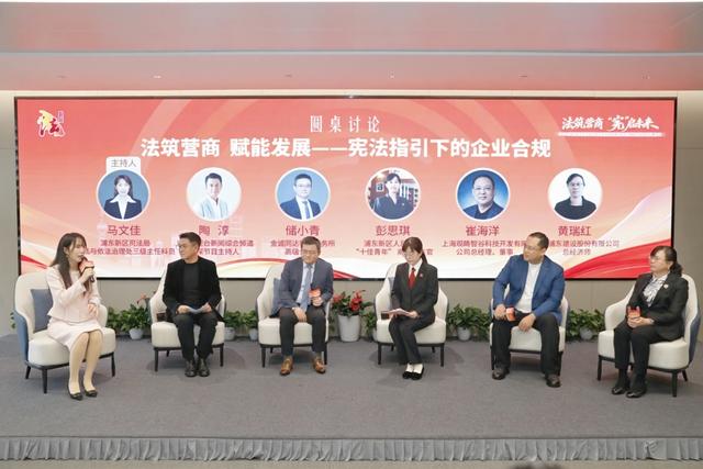 当天,围绕“法筑营商,赋能发展——宪法指引下的企业合规”这一主题,专家库成员与园区企业高管进行圆桌论坛,展开了一场跨界的对话与思想的碰撞。