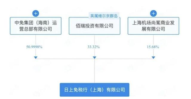目前,日上上海由中免集团控股约51%,其余的股份由外资创始股东佰瑞投资有限公司和上海机场全资子公司持有。