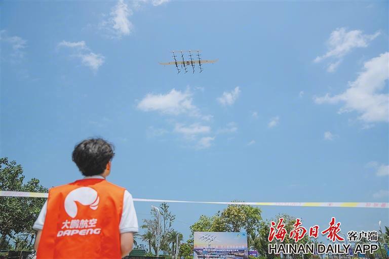 今年4月11日,一架由海南大鹏航空科技有限公司执飞的载货无人机成功飞越琼州海峡,完成试飞——货物从海口美兰国际机场转运出来后,通过“市内低空物流航线”用时26分钟从江东新区展示中心送抵海南国际会展中心,再通过“省际低空物流航线”用时19分钟抵达广东徐闻。海南日报全媒体记者 李天平 摄
