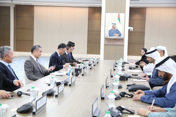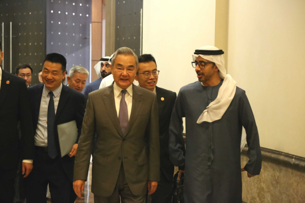 王毅表示,3年前,首届中国—阿拉伯国家峰会成功举办,向外界发出中阿团结合作、共谋发展的有力信号。明年,中方将举办第二届中阿峰会,欢迎阿方领导人来华出席。相信在阿联酋等国支持下,峰会将取得积极成果,推动中国同阿拉伯国家关系迈上新台阶。希望阿联酋为推动尽早完成中国和海湾阿拉伯国家合作委员会自贸协定谈判发挥积极作用。中方也愿同阿联酋在金砖国家、上海合作组织、联合国等多边平台加强政策沟通和立场协调,共同维护多边主义和自由贸易,捍卫国际公平正义,推动构建更加公正合理的全球治理体系。