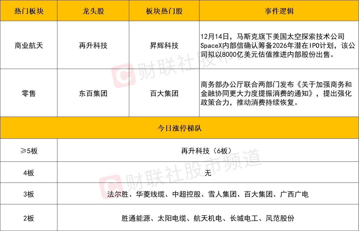 个股层面来看,商业航天依旧是目前市场延续性最佳的题材方向。再升科技6连板、华菱线缆、中超控股3连板,此外,航天电子、龙洲股份、雷科防务、超捷股份、斯瑞新材等个股涨幅居前。不过需注意的是,板块内部个股分歧加剧,人气高标之一的顺灏股份炸板回落最终仅涨超1%,永鼎股份、乾照光电等回调明显,预计后续类似的分歧仍会延续,应对上保持着去弱留强的原则。