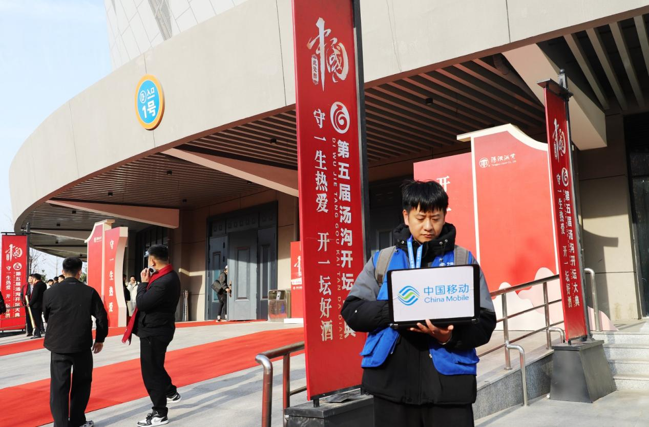 近日,灌南县第五届汤沟开坛大典在万众期待中盛大启幕。在这场备受瞩目的活动中,中国移动江苏公司连云港分公司(以下简称“连云港移动”)发挥自身优势,全力投入到通信网络保障工作中。本次大典以“守一生热爱 开一坛好酒”为主题,展现了中国传统酒文化的独特魅力,活动现场热闹非凡,吸引了众多游客和业内人士前来参加。