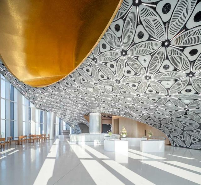 其中,55层以碳中和为主题精心打造了环保展览装置,将生态理念巧妙融入观光体验,为高空观光增添了全新的内涵。57-58层为户外观景台,以冰山为设计灵感,在户外平台上融入中国传统计时工具日晷的形态元素,构建出兼具艺术美感与文化象征的观景空间。与此同时,项目同时配备多功能会议厅、大型会议室等,为品牌发布、峰会论坛及商务会客提供专业化的空间支撑。