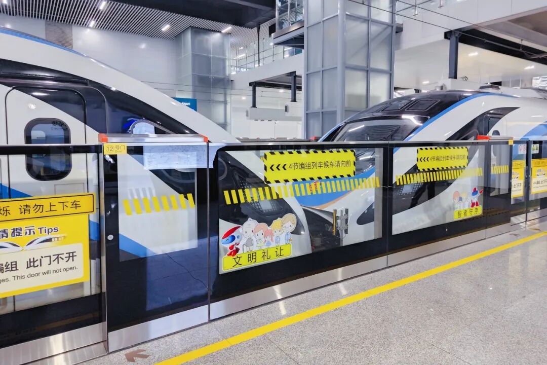 随着4+4编组列车上线,市域机场线各车站的客运组织与服务设施同步进行了系统性升级,为乘客带来更加高效、便捷、舒适的出行体验。