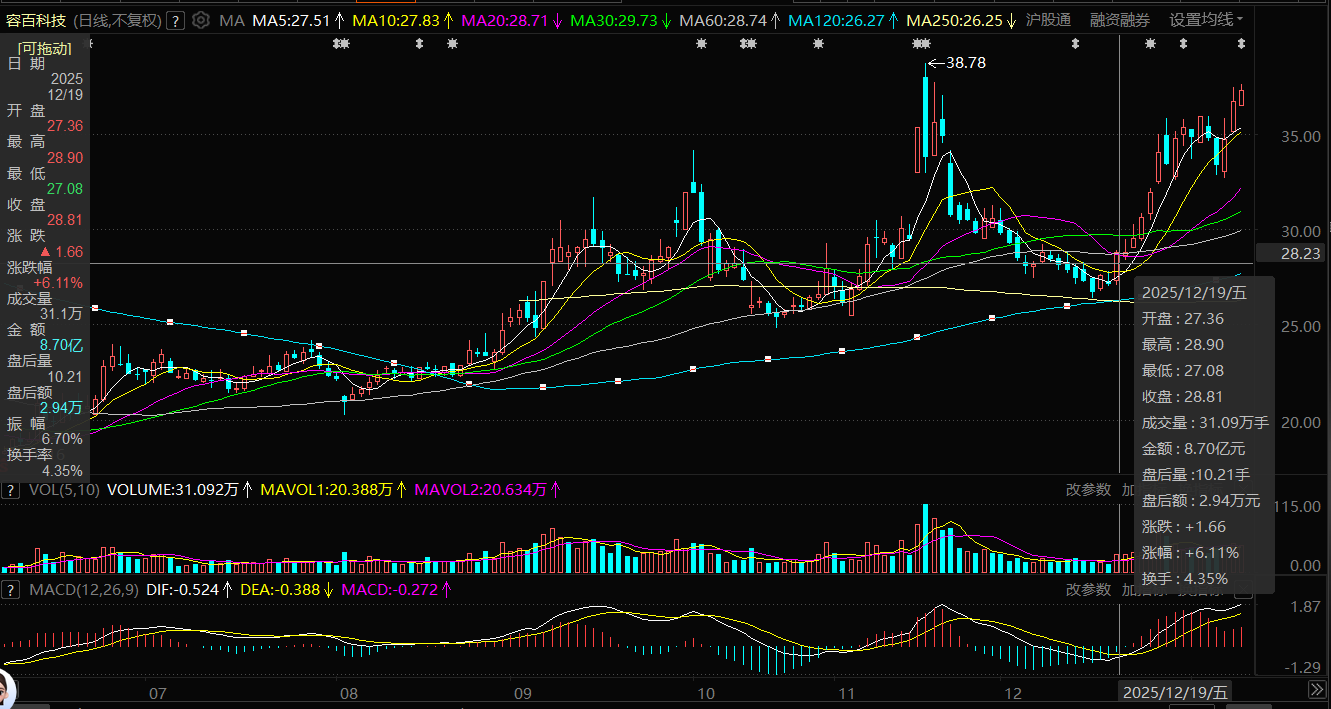 容百科技2025年12月下旬来股价变动。图片来源:东方财富