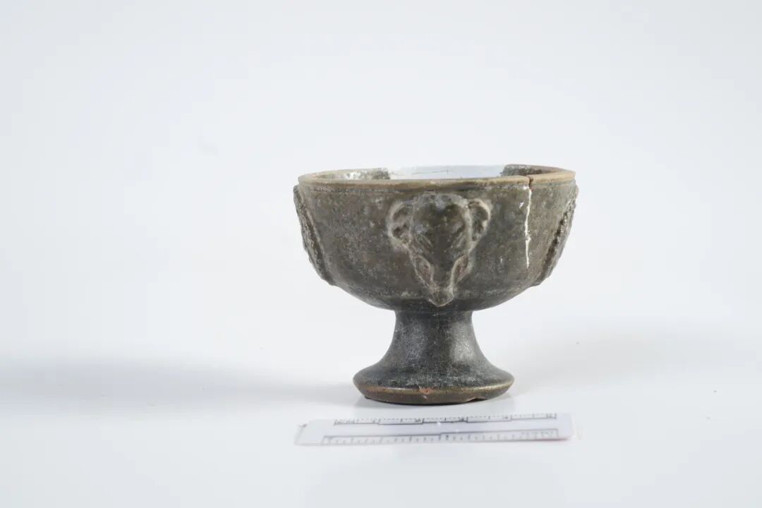 绿釉高足陶杯