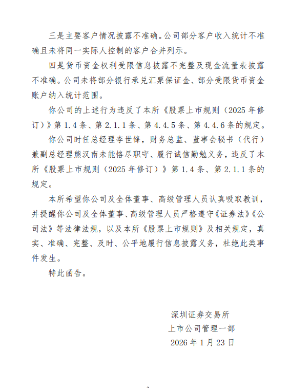 1月23日,深交所披露关于对江西万年青水泥股份有限公司、李世锋、熊汉南的监管函。