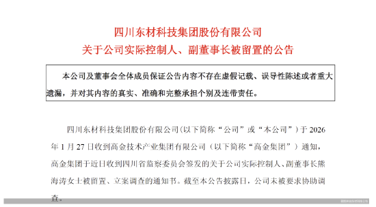东材科技、高盟新材、毅昌科技均表示,收到《四川省监察委员会立案通知书》《四川省监察委员会留置通知书》,熊海涛被四川省监察委员会立案调查并实施留置,目前尚待四川省监察委员会进一步调查。对于被留置原因,高盟新材在公告中披露称,涉嫌犯罪。