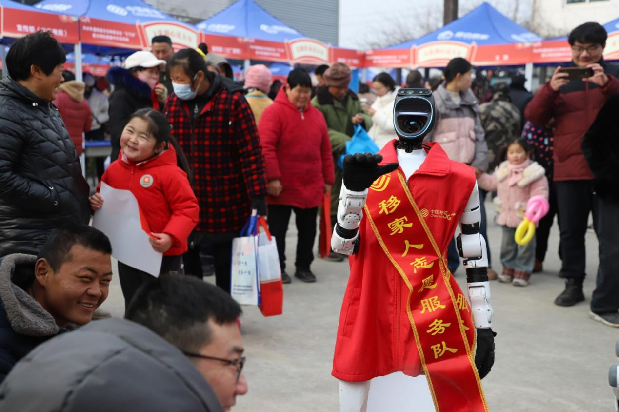 活动现场,连云港移动在集中服务点设立了移动服务咨询点,“移家人”志愿者热情满满,把数智科技与优质服务实实在在地送到群众身边。移动高清家用安防摄像头、云电脑等移动智能产品备受关注,吸引了众多群众现场咨询。移动机器狗憨态可掬,灵活舞动,引得孩子们阵阵欢笑;下棋机器人与村民对弈,智慧交锋,趣味十足。同时,年关将至,电信网络诈骗案件频发,连云港移动的志愿者们还向村民发放防诈骗手册,科普电信网络诈骗相关知识,助力村民提高辨识能力,守护好“钱袋子”。此外,连云港移动还组织网优人员现场值守,密切测试网络质量,全力保障活动现场的网络顺畅。