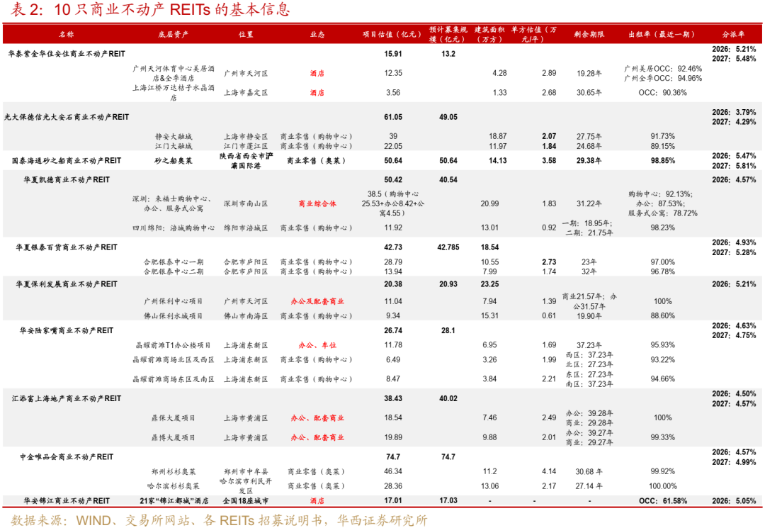 2026年1月29-30日,上交所受理了首批8只商业不动产REITs。本周交易所新受理2只,其中拟在上交所上市的为光大保德信光大安石,底层资产为2个购物中心(上海静安大融城、广东江门大融城),拟募集49.05亿元。深交所迎首单商业不动产REITs——华泰紫金华住安住,底层资产为广州天河体育中心美居酒店&全季酒店项目,以及上海江桥万达桔子水晶酒店项目,拟募集13.2亿元。