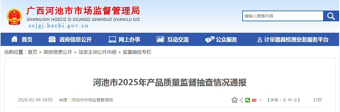 中国质量新闻网讯 据广西河池市市场监督管理局网站消息,为加强产品流通领域质量监督管理,维护广大人民群众合法权益,根据《中华人民共和国产品质量法》《产品质量监督抽查管理办法》等法律法规规定,2025年河池市市场监督管理局对全市43种产品质量开展了监督抽查工作。现将具体情况通报如下: