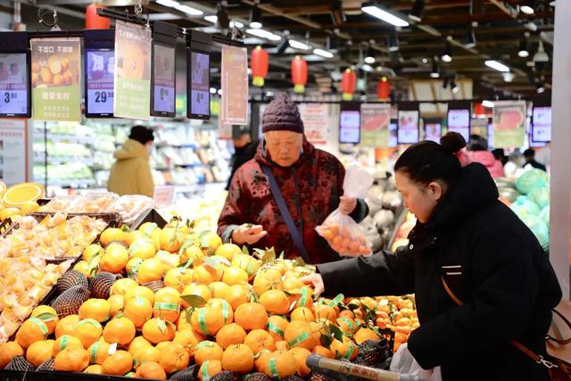 “每年春节前我都来日上置办年货,这里东西全、价格低,蔬菜水果都特别新鲜,肉蛋粮油一站式就能买齐,特方便。”正在挑选水果的市民孟繁平一边称重一边笑着说。
