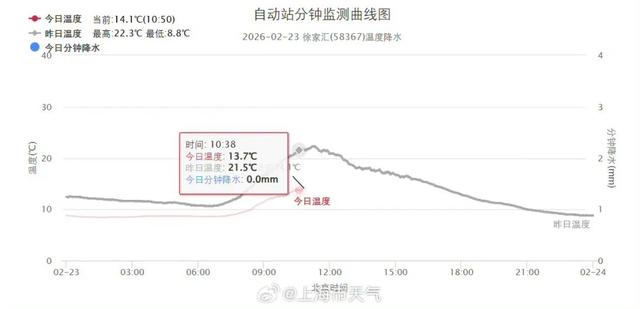 徐家汇站最高气温为22.3℃