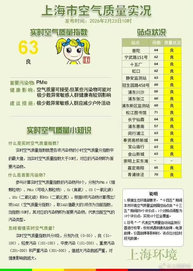 上海市实时空气质量指数为63,良
