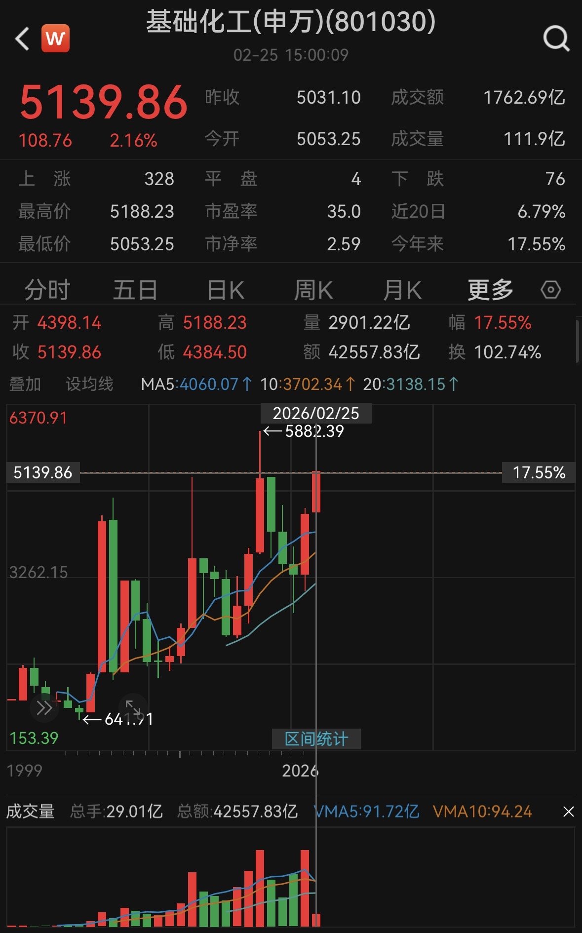 节后开市两天,化工板块迎来了大涨。在2026年,化工板块行业是否迎来“戴维斯双击”,重获资金拥抱?