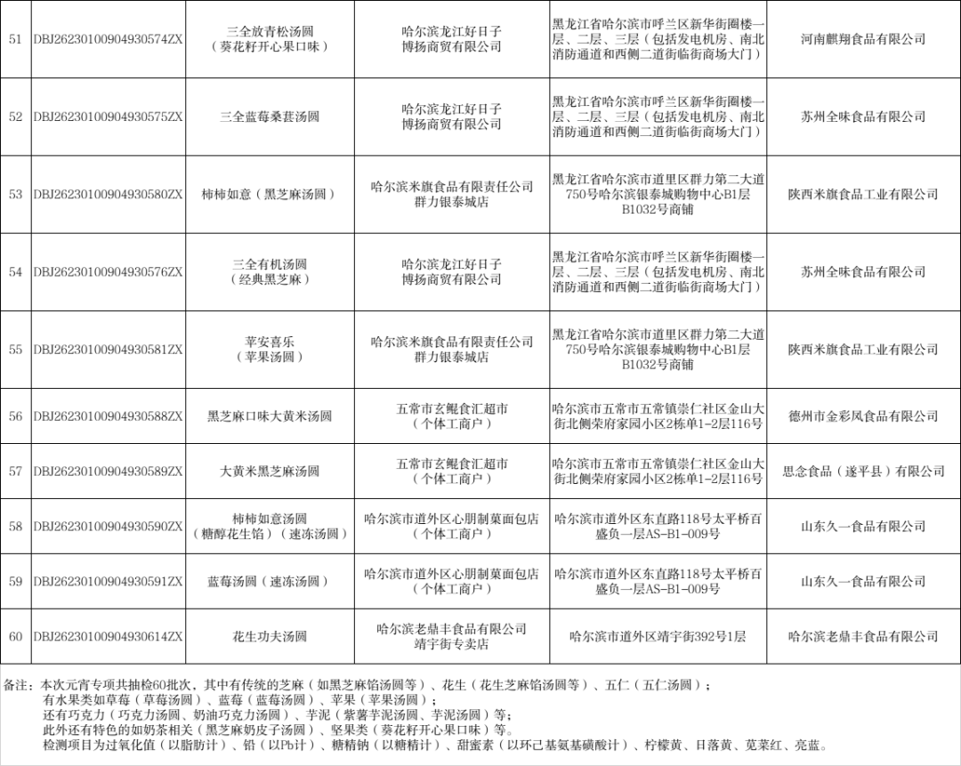元宵专项抽样检验清单