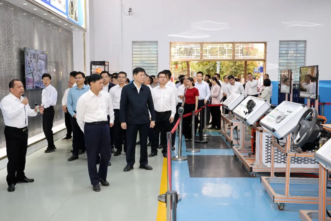在化州市职业技术学校,校园内处处洋溢着勤学笃行的氛围。调研组走进新能源汽车实训基地、烹饪实训基地,实地了解学校教育成果。“学校秉持‘化橘为红,人人出彩’的教育理念,深耕职业教育三十余载,与50多家企业共建产教融合实训基地,更依托广东轻工职业技术大学‘双百行动’帮扶,搭建起中高职衔接、中本贯通的人才培养立交桥。”化州市教育局局长柯幸材说道。