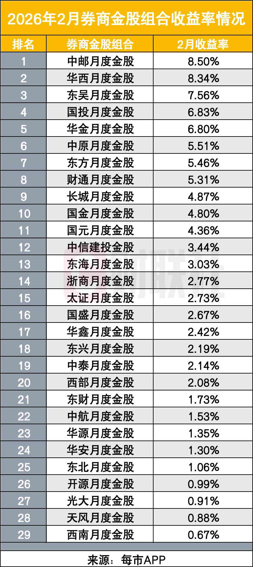 来源:每市APP2月券商金股组合收益率较1月回落