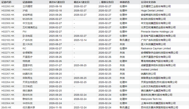 广州广合科技股份有限公司、苏州优乐赛共享服务股份有限公司等聆讯通过。圣火科技集团有限公司、安得智联供应链科技股份有限公司、北京天星医疗股份有限公司等的港股申请失效。